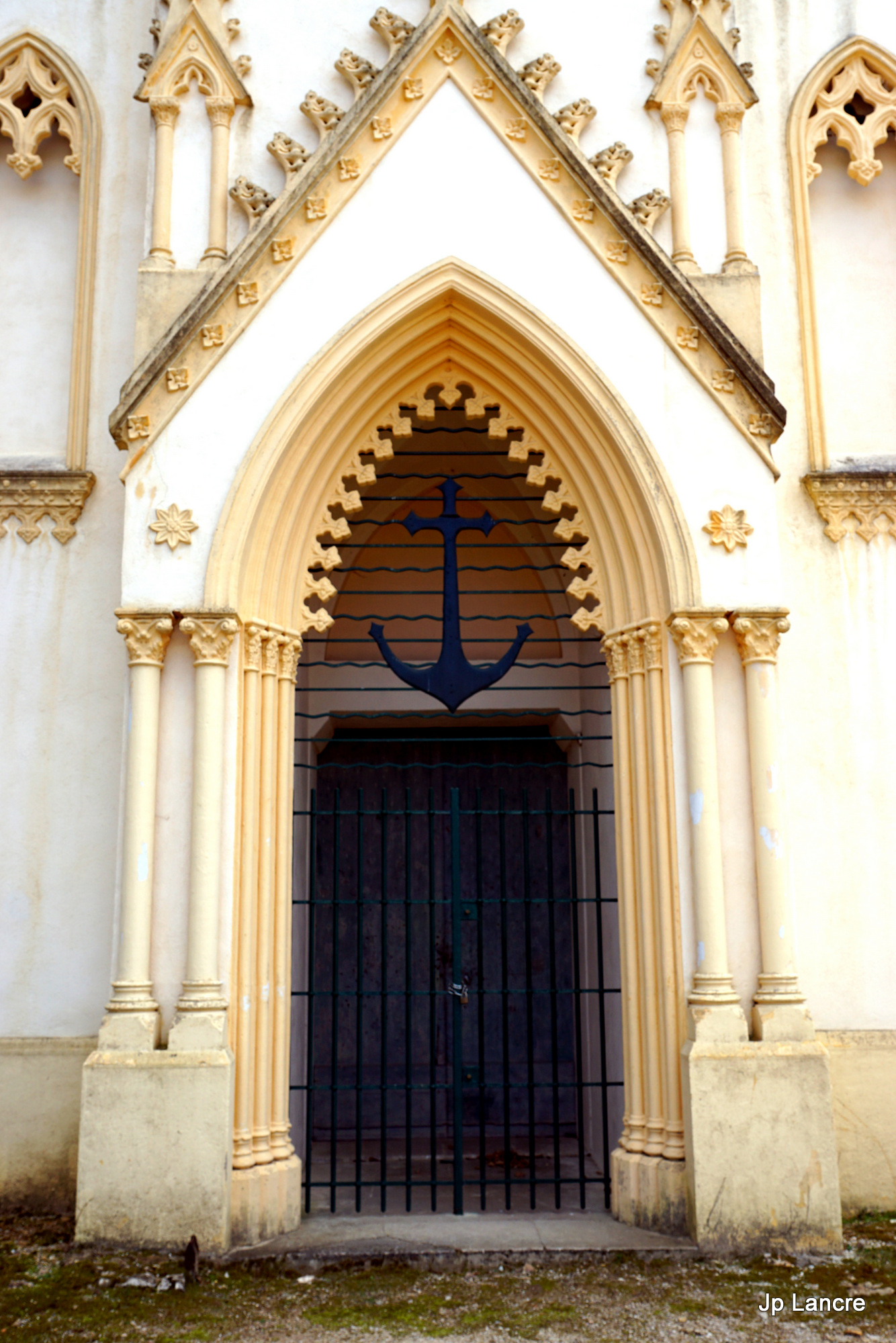 L'ancre de marine sur la porte et au pied de la Vierge.